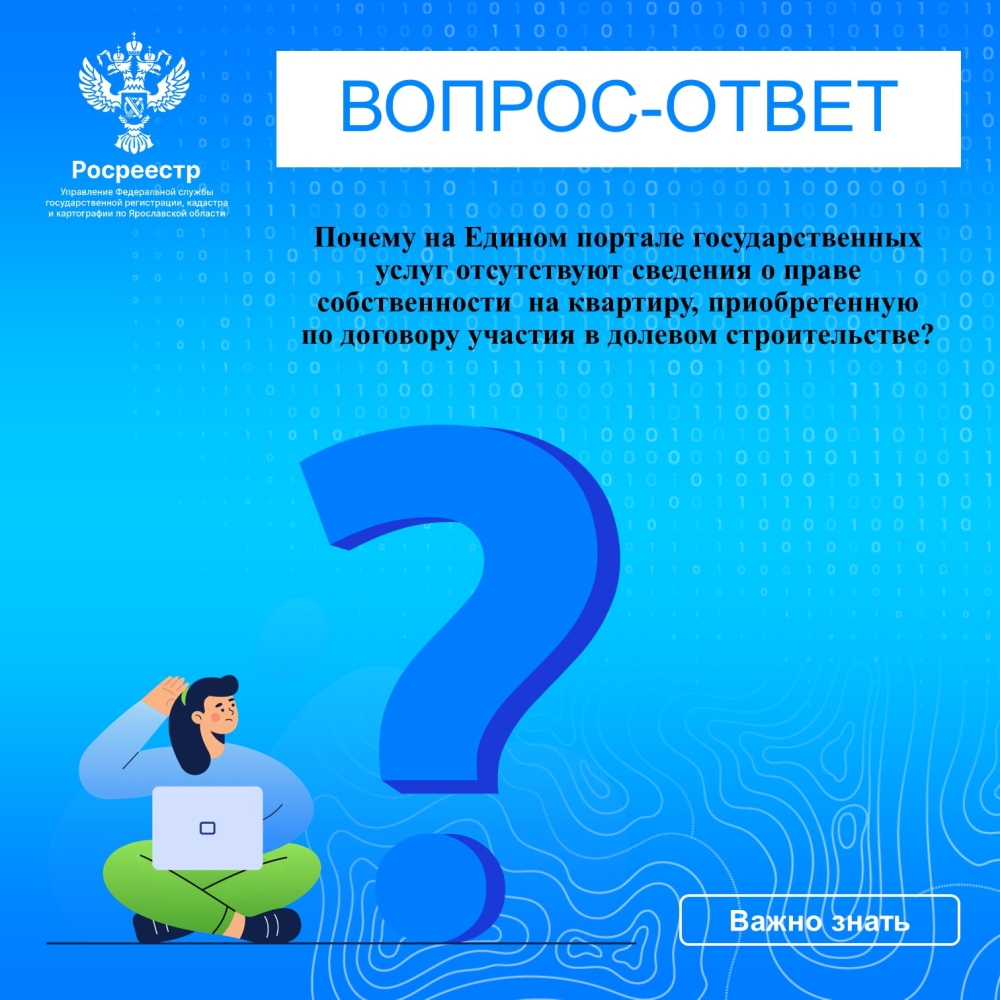 Вопрос: почему на Едином портале государственных услуг отсутствуют сведения о праве собственности на квартиру, приобретенную по договору участия в долевом строительстве