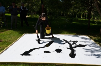Первые такие занятия прошли сегодня. Мастер-класс по икэбане провела Лариса Румянцева, по каллиграфии — Татьяна Лохова и Каори Исидзима. Перед тем, как гости сами попробовали изобразить иероглиф обозначающий сакуру, Каори на огромном листе продемонстрировала, как его нужно писать. Проведение мастер-классов стало возможным благодаря поддержке отдела японской культуры «Japan Foundation» в ВГБИЛ им. М.И.Рудомино. Также сегодня посетителям представилась возможность ознакомиться с работами молодого художника Юлии Кравчук.