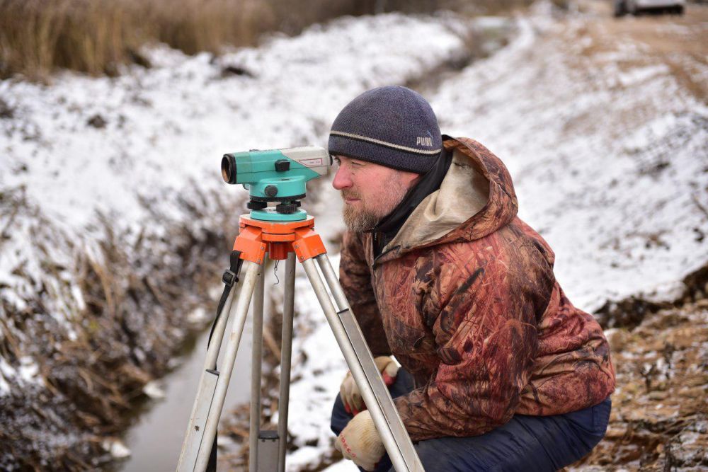 Следующей точкой посещения стала улица Дорожная, где в настоящий момент полным ходом идёт строительство. Сейчас дорожники приступили к формированию полотна. Прокладывают водопроводящие трубы, кладут георешётку.