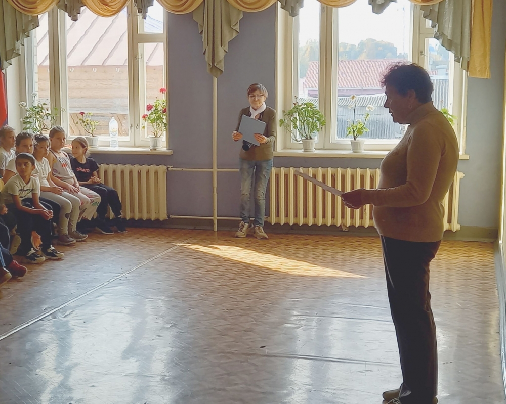 Самойлова Вера Степановна прочитала детям свои небольшие зарисовки об осени. Осенние стихи читали и другие члены общества. Прозвучали стихи С.Есенина, Ф.Тютчева, К.Бальмонта. Вспомнили пословицы и поговорки про осень, про сентябрь.