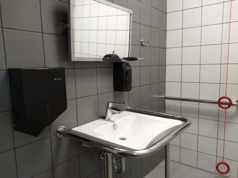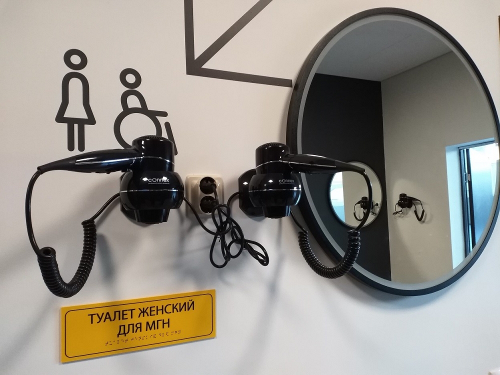 Сергей Александрович с любовью рассказывал и показывал свои владения. Кабинет тренера, женские и мужские раздевалки, инвентарную комнату. Продемонстрировал, как оборудованы туалеты и душевые кабины. Здесь есть туалеты, для людей с ограниченными возможностями здоровья, у которых перед дверью расположены таблички Брайля. Он подробно рассказал о льготах и скидках, которые предоставляются пенсионерам, детям и студентам.